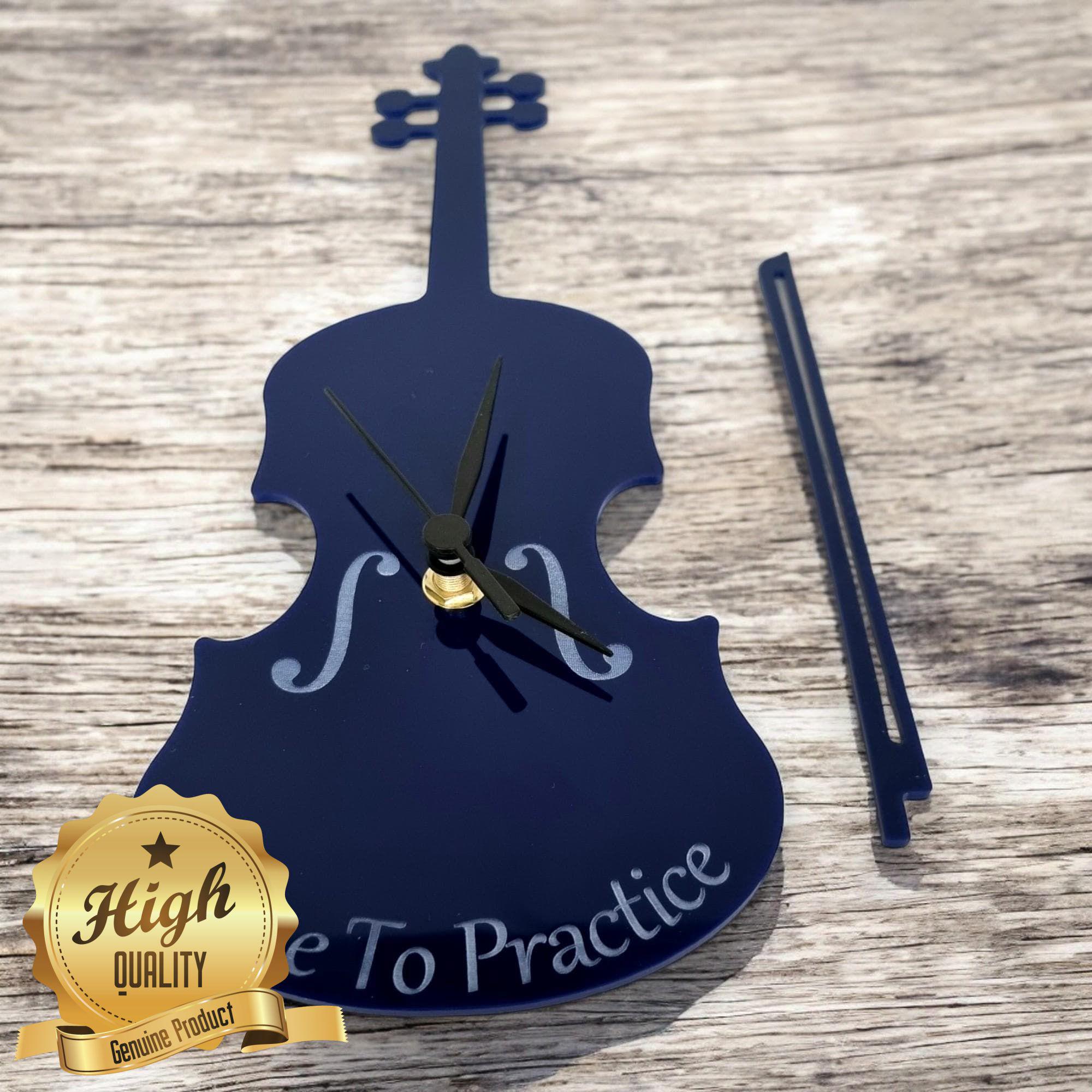 Violin Shaped Clocks - Custom colours and Woods. Engraving and Bespoke Shapes & Sizes Made
