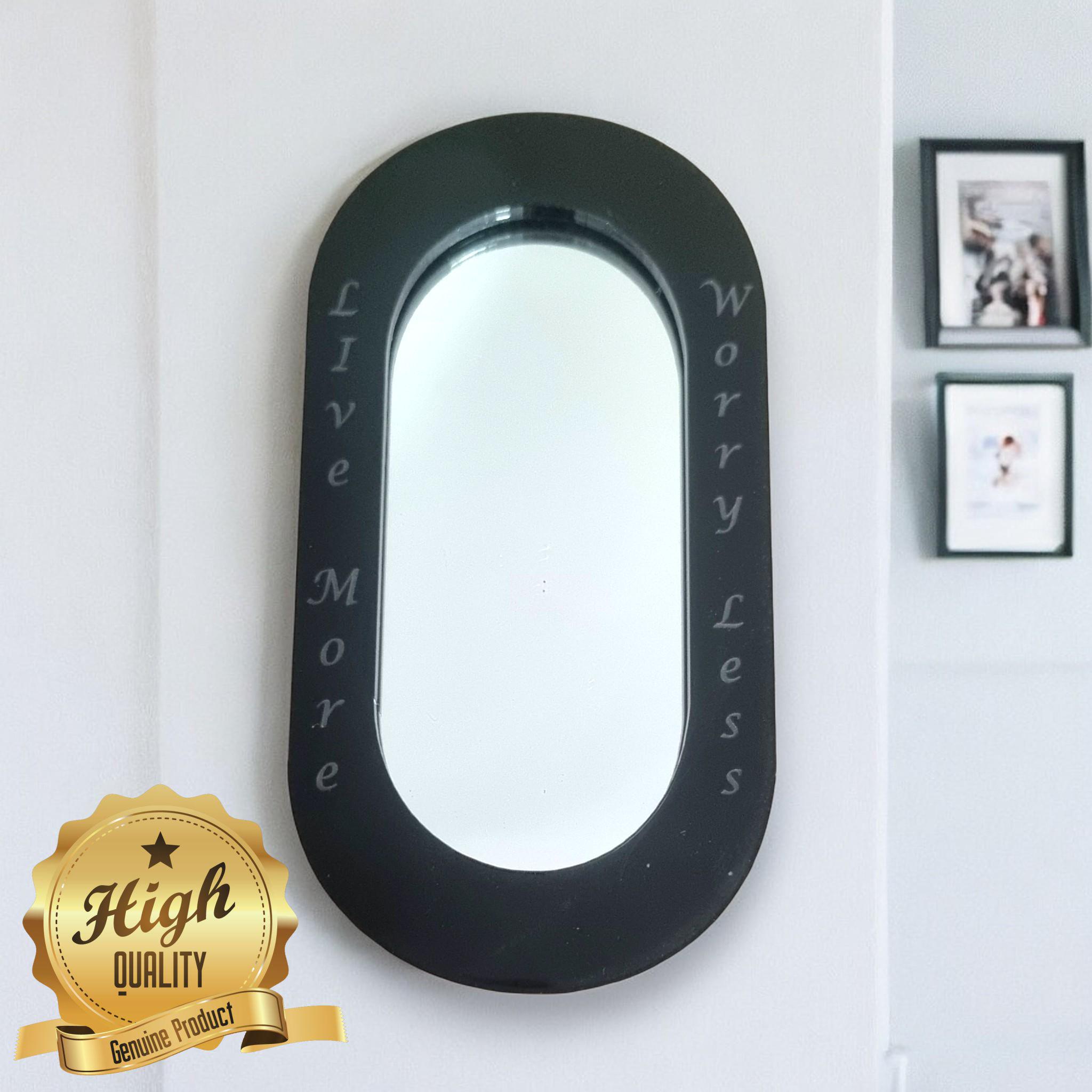 Pill Shaped Acrylic Mirror with Color Frame & Hooks - Bespoke Engraving