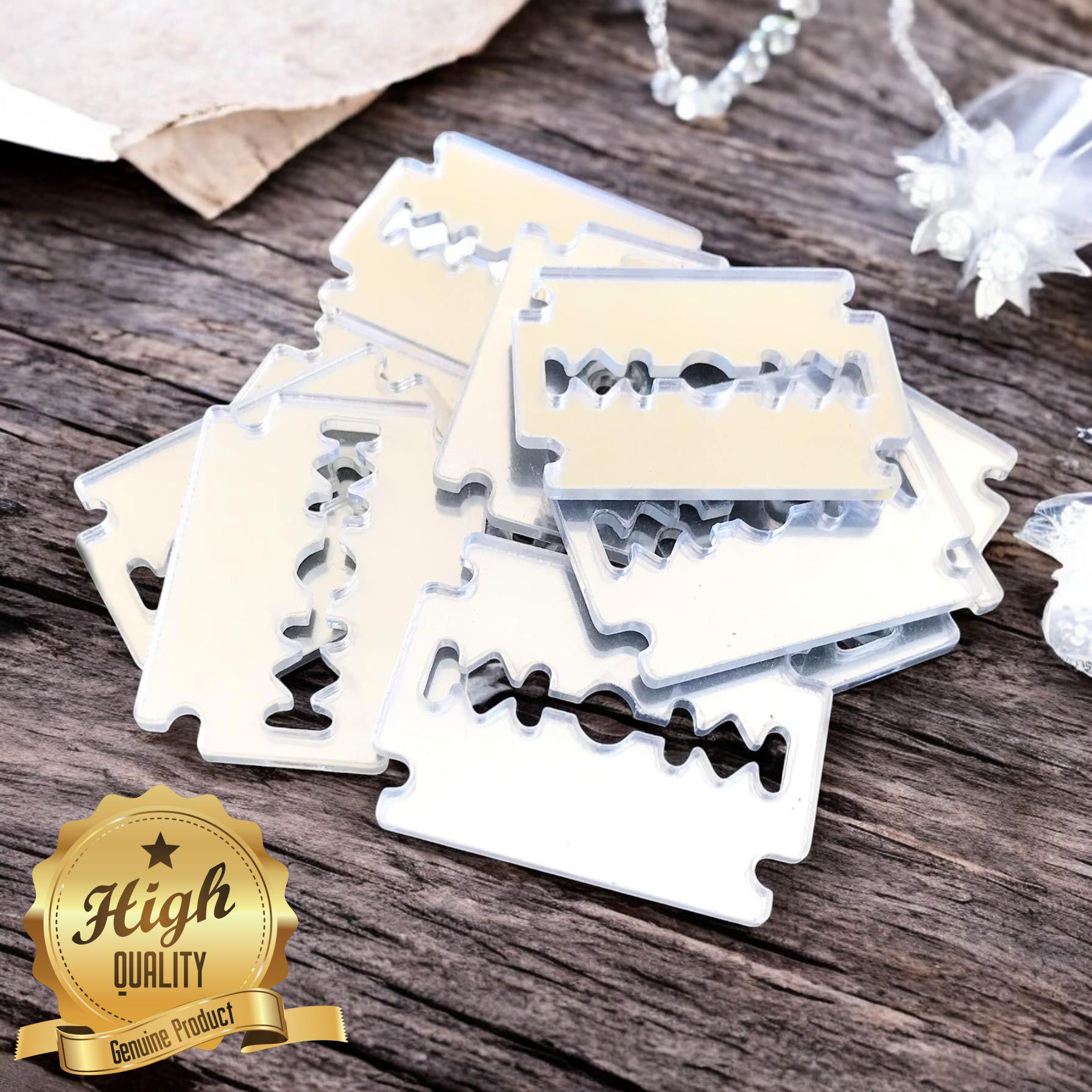Razor Blade Shaped Acrylic Crafting Mirrors: Custom Colors, Woods (Pack of 10)