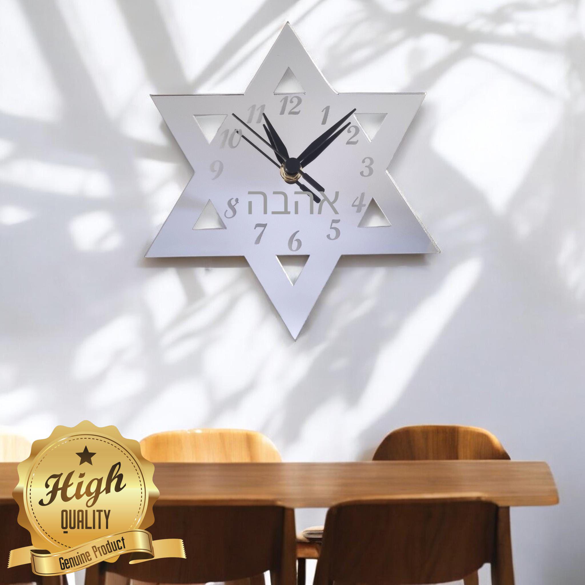 Engraved Mirrored Star of David Clocks - Custom Colours/Woods, Bespoke Shapes & Sizes Made