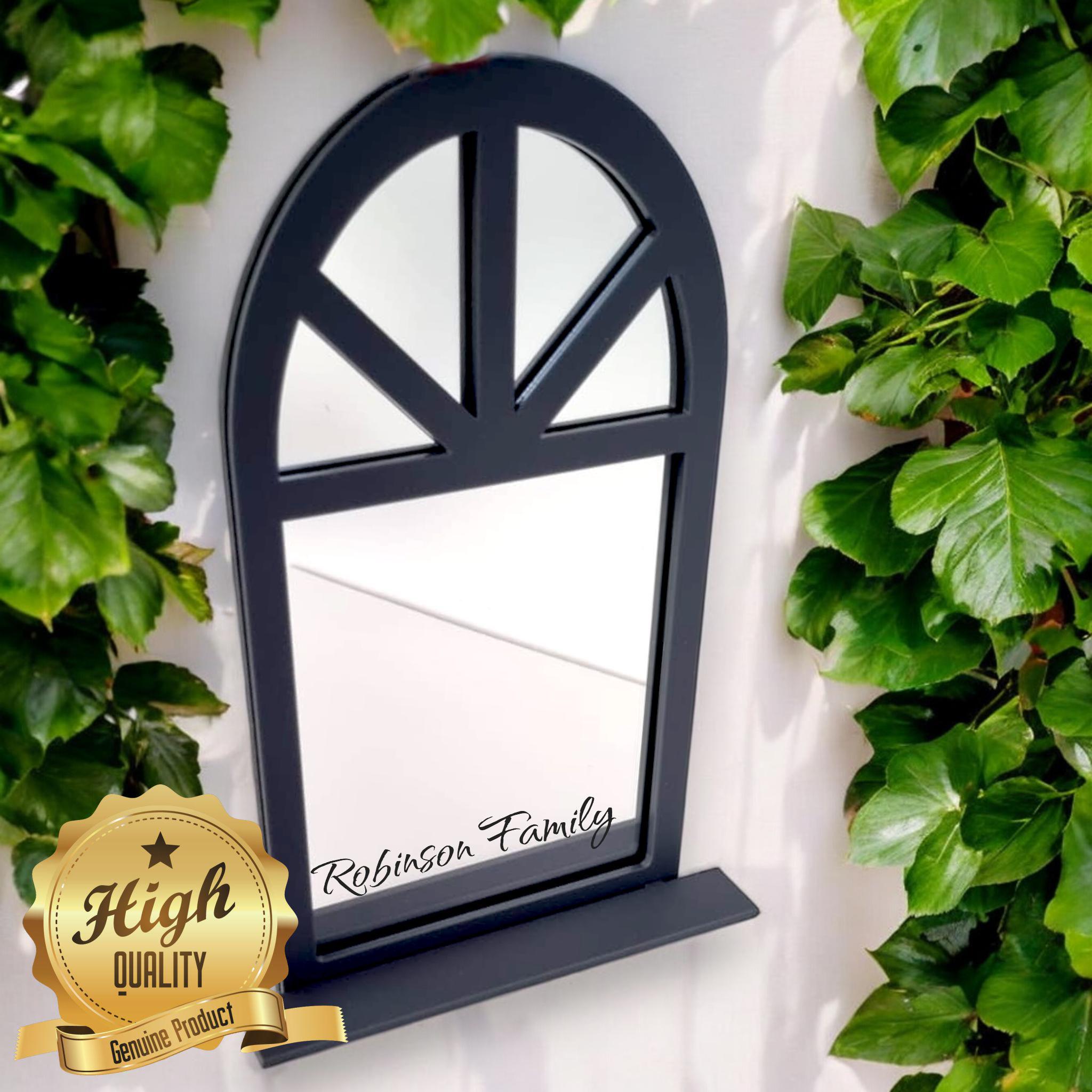 Victorian Arch Garden Mirror: Custom Framed Acrylic Mirror with Engraving