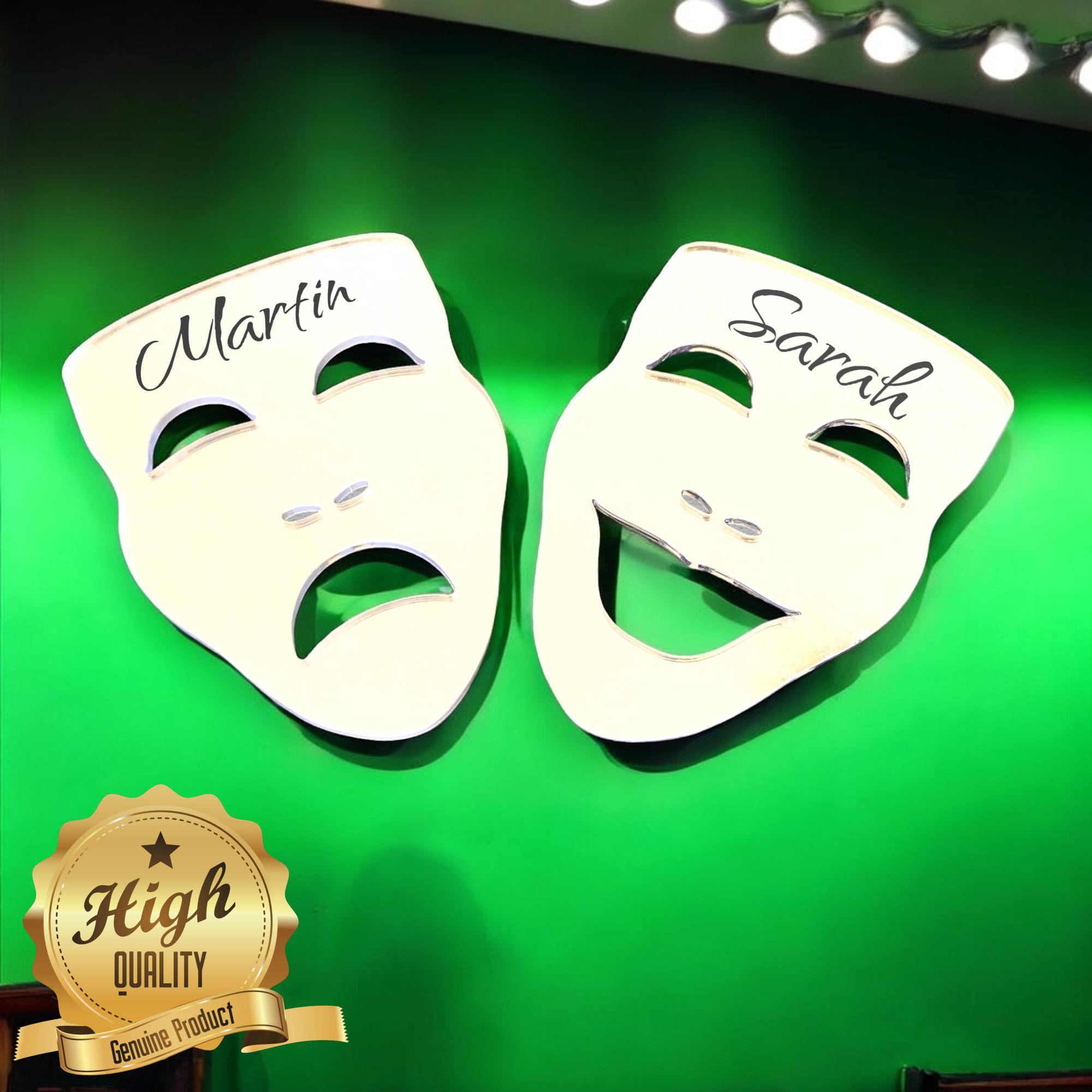 Pair of Comedy and Tragedy Jenus Theatre Mirrors, we can engrae them if you would like, you can have custom sizes and colours, please message us your ideas.