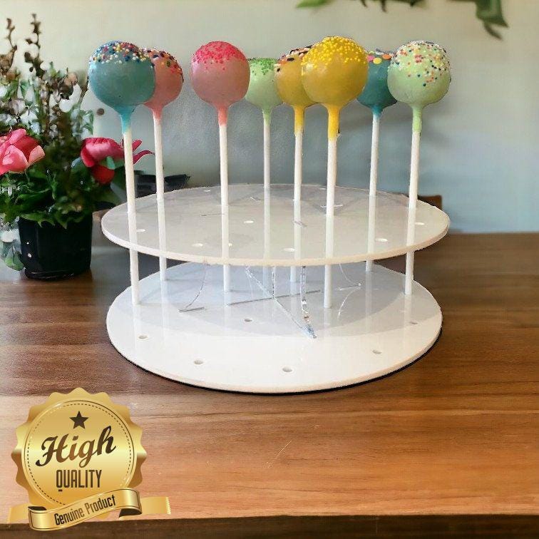 The Cake Pop Pillars cross over and sit in the two bases. Comes flat packed, easy to assemble, then pack away for easy storage.