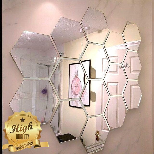 Hexagon Shaped Silver Mirrors in Packs of Ten, Custom woods, Sizes, Colours Made